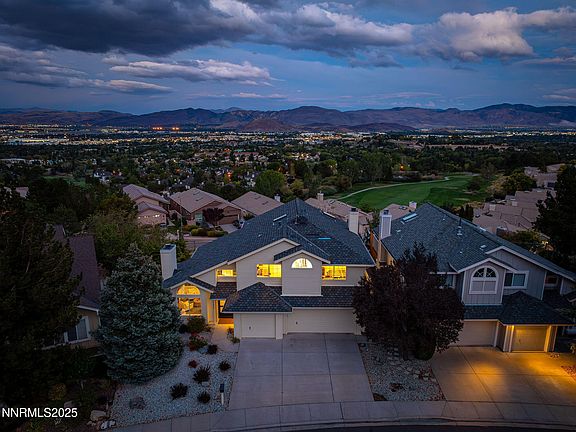 Completely remodeled and upgraded home in Lakeridge Springs, perched above Lake Stanley and hole #14 of the Lakeridge Golf Course. The panoramic views of the valley, Downtown Reno, golf course and eastern foothills are truly priceless. Throughout the entire home is light oak engineered hardwood flooring and a recent refinishing of all interior walls with a smooth texture. The custom designed kitchen is highlighted by ample amounts of high-end cabinetry, Quartz counter tops, double oven, wine fridge, gas cook top and a large bay window that brings the beautiful views into the home. The master bedroom provides the peak experience of the views from inside and outside on the balcony. The master bathroom has floor-to-ceiling Italian tile, high-end spa shower, floating vanity and walk-in closet with built-ins. Both the interior staircase and balcony have been upgraded with steel and cable railings. Other notable features include; recently repainted and refinished deck and balcony, 3 car garage, custom built-in bar with a fridge, upgraded guest bathroom, new AC and the furnace is 2 yrs old. The HOA provides a pool, tennis courts, playground area and beautiful park.