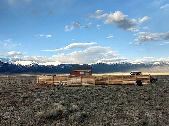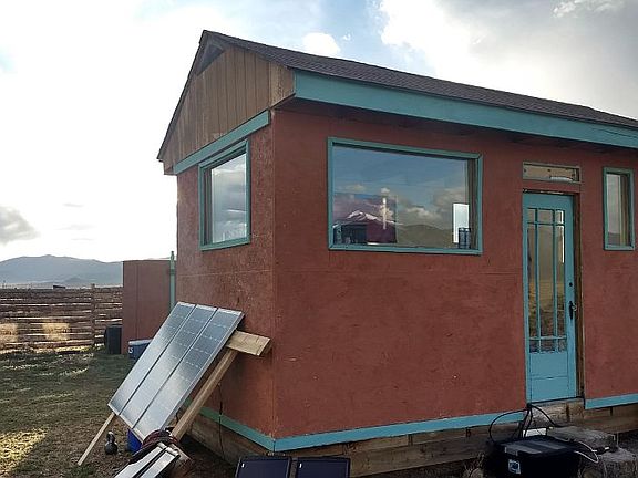 This is a turn-key, off-grid, solar powered retreat/residence and most likely the most affordable home in the United States. Unlike a lot of properties in the San Luis Valley on the market, you can reside here from day one as there is a legal street address. It's a tiny house (128 SF) that is well insulated and has been given a cheerful southwestern veneer. There is 400 watts of solar power with a 1500/3000 inverter and plenty of batteries to get you through the very rare stretches of cloudy days. The building was built with a legal permit, and the outhouse is actually a vaulted toilet which means that you don't need to put a septic in to live out here according to a grandfather exemption given to this community from the county back in 2012. It has legal access from the county and has a mailbox for the property that is on Highway 17. This 1 acre lot is on the very SE edge of the Mineral Hotsprings Estates (which is just south of Joyful Journey, zillow has it wrong), so you have wide open views to the mountains that makes it seems like you own a whole lot more land than you actually do. I put a rather attractive tree bark style privacy fence on the west and north sides of the house to provide a maximum feeling of privacy and well being. It is totally livable as is and only a 90 second drive to joyful journey, making it an excellent spot for short term profits (a nearby cabin is frequently rented at $70/night). The neighborhood is mostly aging hermits that keep to themselves. We have no illegal pot growers or other low-lifes on this side of the highway. Well permit filed with Department of Water Resources.