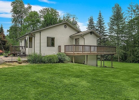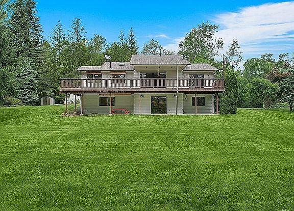 Secluded estate on level 5 acres. Mix of Open space, wooded area, pond, creek, & fruit trees galore. Beautiful home features 4 bed/2.5 baths. Gorgeous kitchen w/ butler pantry, tons of cabinets, solid oak hardwoods, breakfast nook & adjacent dining room. Master on main w/ WIC, private bath & access to expansive wrap around deck. Downstairs 3beds, 1bath, Huge 2nd living rm, Utility/multipurpose room & patio. Oversized carport w/power, Rv parking w/ hookups, Outbuildings, firepit & archery range.