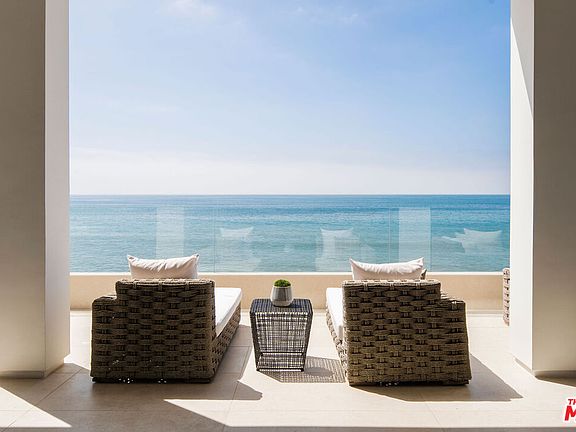 Spectacular Malibu Beachfront Retreat with 61 Feet of Ocean Frontage on private street with deepest sandy beach! Experience luxury coastal living in this expansive 3,500 sq ft Malibu beach home, perfectly situated on a rare private street with no through traffic and generous off-street parking for all guests. Boasting 61 feet of pristine beach frontage, this architectural gem offers panoramic ocean views from every room. The entry level welcomes you with soaring ceilings and dramatic walls of custom glass sliders that blur the line between indoors and out. A spacious open-concept living and dining area flows seamlessly to a wraparound oceanfront deck, perfect for entertaining or relaxing to the sound of the waves. The chef's kitchen is a showstopper, outfitted with premium appliances and stunning Taj Mahal natural stone countertops and island. The entire top floor is dedicated to a luxurious primary retreat featuring high ceilings, a cozy fireplace, new Fleetwood sliders and windows, and sweeping views of the Pacific. The spa-inspired primary bath includes a steam shower, soaking tub, and a generous walk-in closet. Step outside to your private rooftop veranda nearly 800 sq ft of outdoor living space with an ocean-view spa and lounge area, rarely found in Malibu. The lower level hosts three spacious guest suites, each with en suite bathrooms and ocean views. A private deck offers yet another peaceful spot to take in the beauty of the coastline. Follow the newly rebuilt staircase down to your own private sandy beach terrace complete with an outdoor shower and oversized storage area for surfboards and beach gear. This exceptional property combines modern luxury, privacy, and timeless oceanfront appeal a rare opportunity to own a true Malibu escape.