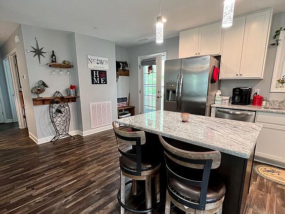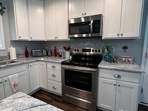 TURN KEY CAPE COD! This meticulously maintained Two-bedroom/ two-bathroom home measures at 1,000 square finished feet. Home has an open, light filled floor plan which set off the vinyl plank flooring throughout. The beautiful kitchen features granite counter tops, center island with seating area and 42 inch white shaker cabinets. All household appliances include: washer and dryer, stainless stove, refrigerator, dishwasher, microwave. The master suite has a walk-in closet and sliding barn door giving access to master bathroom. Additional guest bedroom and full bath completes downstairs layout. Upstairs access is through the open living area, which contains 475 unfinished SQFT with access to plumbing, electric and heating/air for future expansion. The home itself sits on .64 acres and features a rear deck which overlooks backyard but the cherry on top is the 16x36 detached garage/workshop. This perfect “man cave/she shed” features 100 amp service, workshop area, plenty of with room to store yard equipment and an entertainment area with small fridge! A few added bonuses are that the home is equipped with sprinkler system and is elevated to FEMA standard and public water and sewer but NO city taxes! Call today for your private showing!