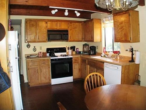 Quaint Gambrel home nicely set on 1.44 of an acre with views. 3BR/2BA, approx. 1728SF, living rm with brick fireplace, large family room, pool table included, laundry room, beautiful property with rock formations, oaks and mature landscaping. Deck has new supports, composition roof is 3yrs old, detached garage.