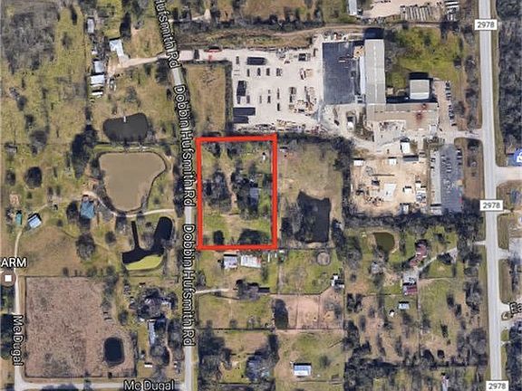 5 acres of unrestricted land with 375 feet of frontage on Dobbin Huffsmith! There is a house on the property that flooded during the May 2016 flood, but is slowly being repaired. The property, however, is not located in the flood plain. There are two septic systems on the property, one field & drain and one aerobic.