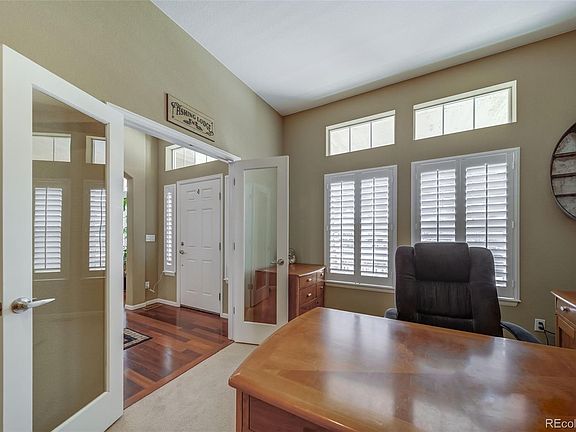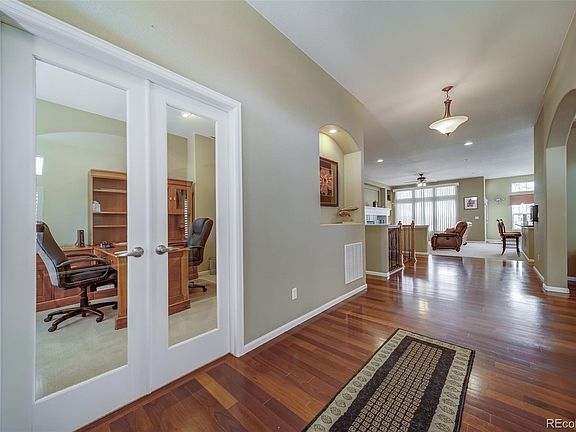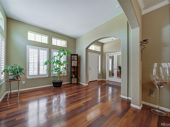 Wonderful ranch home with Brazilian cherry hardwoods on. This home has it all: Formal parlor, Dining Room, study & guest bath. Huge kitchen with stainless steel appliances & large eating space. Master suite w/ 5 pc bath, cherry cabinets, walk in closet w/built ins, crown molding & more. Secondary bedrooms close by w/full bath, cherry & corian. Laundry/mud room adjacent to garage. Professionally finished basement wet bar and family room, game room, media room, custom 3/4 bath with walk in shower . CAT-5 WIRED*Private Security system* Bose surround sound speakers wired upstairs throughout the ceiling and walls.* Wet bar downstairs... ready to entertain!Theater sectional sofa, wall-mounted 60" SmartTV&Polk audio sound bar to stay*Unique hidden room in the basement behind the theater room, with a huge crawl space inside the hidden area!Only a 5 minute "walk" to an Aurora Reservoir entrance point. Biking/hiking/fishing/walking/jogging... Just minutes away! Cool little private park, with kids playground steps away! Driveway faces south... huge winter benefit! Once you see it, you will want to own it.