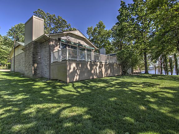 Beautiful very well kept waterfront home w/an amazing view of Horse Creek on Grand Lake. Open floor plan w/2 living areas, both w/fireplace. Master bed includes cedar closets, en-suite bath & stairs down to separate office & workroom. Large deck w/retractable awnings overlooks the lake & park like back yard, 12' x 20' shed & gentle slope to a 2 slip dock w/lift. The home is full brick w/2 car garage & bug-be-gone system. Too many extras to list. Furniture negotiable. This property is a MUST SEE!