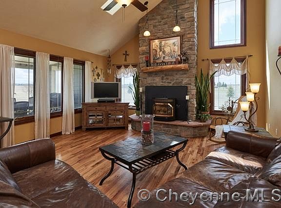 • Interior Features: Main Floor Laundry, Main Floor Master, Pantry, Separate Dining, Vaulted Ceiling, Walk-In Closet, Thermal Windows, Hardwood Floors, Wood Windows, Stained Natural Trim, Great Room, Skylights, Wet Bar