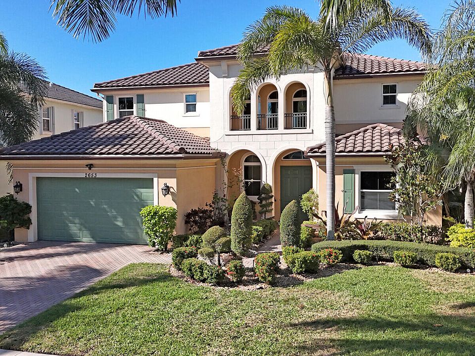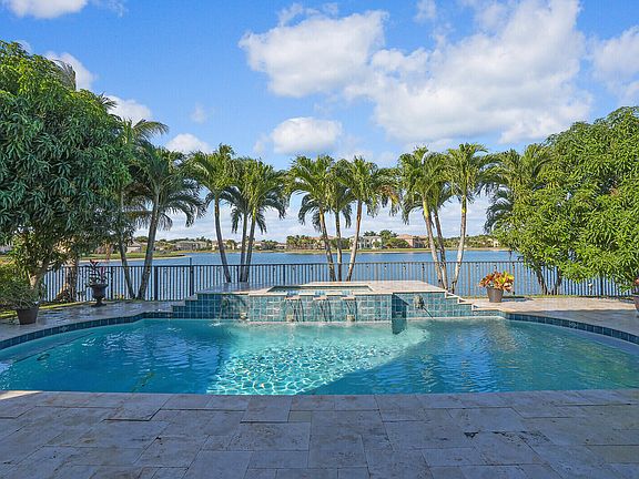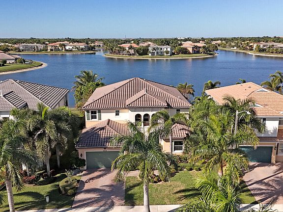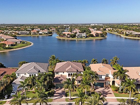 This fabulous Callista floor plan checks all the boxes... One of the best (if not the best) lakefront lots in Olympia, large custom pool with a raised spa, travertine pool decking, covered and screened balcony off the primary suite, hardwood flooring upstairs, IMPACT GLASS WINDOWS, gorgeous curved staircase with wrought iron railings, 2 newer air conditioners (2024), crown molding throughout, double wall ovens, sun shades on the covered patio, landscape lighting, and so much more... There is a spacious bedroom downstairs with an adjacent full bathroom and media room/separate living room - could be an ideal in-law suite... Olympia is a highly sought after address with resort style amenities including a grand clubhouse with fitness center, meeting rooms, indoor basketball court, great,, room with a catering kitchen. Outdoor amenities include tennis courts, pickleball courts, volleyball court, state of the art playground, splash pad, covered loggia, and a resort style pool with poolside cabanas... The location is ideal and only minutes to A-rated Wellington schools, the Wellington Tennis Center, world class equestrian venues, shopping, restaurants, Whole Foods, Trader Joe's and so much more... The island of Palm Beach and the Atlantic Ocean are approximately 12 miles due east... Hurry! This beautiful home will provide the ideal Florida lifestyle and is priced to sell.