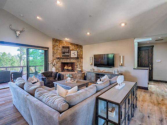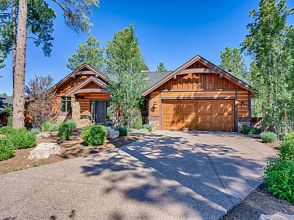 Looking for the perfect getaway or year round home? This amazing home has upgrades galore, modern finishes, beautiful wood flooring, stone fireplace, vaulted ceilings, and lots of room for get togethers. Open concept, kitchen island, custom cabinets, upgraded fixtures, double oven, and great room. It's professionally landscaped, and has a huge deck, perfect for entertaining or enjoying the cooler temperatures of Flagstaff with its long views. Pride of ownership is evident and this home is spotless! It is equipped with a/c, stainless appliances, wine cooler, built in garage cabinets, epoxy floor, 3 suites plus half bath and lower level family room. Come see it today!