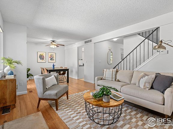 Discover the utmost in location, convenience, and style in this 4-bedroom, 3-bathroom updated townhouse nestled within a tranquil complex. Positioned for optimal sunlight, this south-facing unit offers stunning mountain views from two decks and private patios. The finished basement boasts versatility with an egress window, offering options as a 4th bedroom, rec room, or office. This central Boulder townhome caters to comfort, featuring private indoor-outdoor living spaces, a covered carport, an oversized storage room, and situated by a grassy area and inviting community pool. The main floor laundry lends itself to easy everyday living. The gas fireplace creates a cozy atmosphere. Revel in the serene lifestyle with private fenced front and back patios, perfect for gardening and entertaining. The neighborhood is surrounded by mature trees, and the 3 upstairs bedrooms provide peace and privacy. Immerse yourself in Boulder's vibrant community by cycling or strolling along the extensive network of trails that lead to local gems like Tangerine, Rayback, and coffee shops, enjoy the bike path directly to the University of Colorado, or walk the short distance to Downtown Boulder's lively Pearl Street Mall. The location is unbeatable! Don't miss your rare opportunity to own a townhome that embodies the essence of Boulder's sought-after lifestyle.