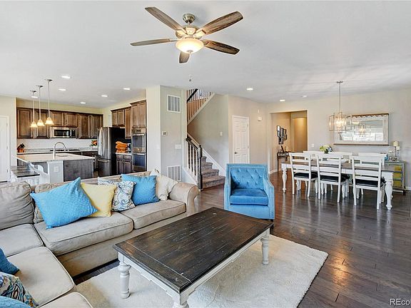 CRYSTAL VALLEY GEM** PREMIUM ELEVATED LOT BACKING TO OPEN SPACE & VIEWS* THE PERFECT GATHERING SPOT OF THE HOME IS THE SPACIOUS GOURMET KITCHEN THAT SPILLS SEAMLESSLY OUT TO THE EXTENDED COVERED DECK- IDEAL FOR EVENING BBQ'S & FAMILY DINNERS* CHEFS KITCHEN FEATURES OVERSIZED ISLAND, UPGRADED CABINETRY, STAINLESS APPLIANCES & REFRIGERATOR** COZY MASTER SUITE W/ SLAB GRANITE, EXTENSIVE TILE WORK, LARGE WALK-IN CLOSET & TRANQUIL VIEWS* EXTENDED WIDEPLANK FLOORING THROUGHOUT MAIN LEVEL* OFFICE/ SITTING ROOM* LARGE LOFT- GREAT SPACE FOR THE KIDDOS OR SECONDARY MEDIA ROOM* SURROUND SOUND IN FAMILY ROOM* UPSTAIRS LAUNDRY ROOM* GARAGE SHELVING STAYS* WALKOUT BASEMENT* NICE ADDED ELBOW ROOM W/ NO DIRECT NEIGHBORS TO THE SOUTH* DIRECT ACCESS TO TRAILS* PERFECTLY CONVENIENT TO ALL THE NEW DEVELOPEMENT/RESTAURANTS & SHOPS OF DOWNTOWN CASTLE ROCK** PRIVATE & SERENE SETTING IN A TERRIFIC FAMILY NEIGHBORHOOD- WELCOME HOME!