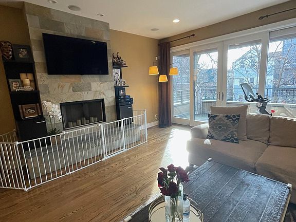 Beautiful and spacious 2bed/2bath situated on a gorgeous tree-lined street in the heart of Lincoln Park! This gem features Viking stainless steel appliances, granite countertops, and a full stone backsplash. Brand new dishwasher, microwave and Grohe faucet. The unit has lovely hardwood floors throughout, 10-foot ceilings and an incredible sunlit living space. Also includes: built-in shelving, floor-to-ceiling stone surrounding a wood burning fireplace with gas starter. Oversized sliding glass doors that lead to a rare 18x7 front balcony. The home is wired for surround sound and is great for entertaining! Large rear deck offers a second outdoor space with access from both the back door and primary bedroom. Spacious primary bedroom with walk-in closet. The unit boasts a spa-like marble bath with limestone, heated floors, jacuzzi, and Grohe shower with body sprays. New, in-unit stackable washer dryer. Large hallway closet, perfect for coats, shoes and additional storage. All brick building. One exterior, covered parking spot is included along with one sizable storage room. Located blocks from the Fullerton and Diversey "L" stations. Prime location in the epicenter of Lincoln Park near restaurants, coffee shops, grocery stores, public transportation, bars/nightlife, parks, the lake, zoo, and much more! Available May 15th!!