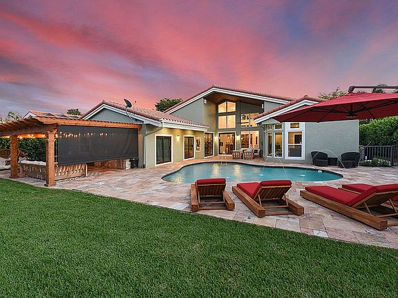 COMPLETELY RENOVATED FROM TOP TO BOTTOM WITH NO EXPENSE SPARED! ENTERTAINERS AND FAMILY DREAM HOME located in the highly sought-after Colonnade community. 4 BEDROOM/ 3.5 BATH POOL HOME WITH OPEN LIVING SPACE. Beautiful, engineered hardwoods throughout the entire home. New floor to ceiling windows looking out to a picturesque backyard in the huge great room with 18ft ceilings. Inviting family room with modern 72” electric fireplace built into floor to ceiling ledger stone surround. The remodeled kitchen offers white shaker cabinets staked 10ft tall, Cambria Quartz on the huge 10ft island. Backsplash all the way to the ceiling with SS appliances. Huge master suite looks out to the backyard, luxurious, all Carrara Venato Marble Master Bathroom with freestanding tub and spa shower, and enormous closet with built-ins. 3 more spacious bedrooms with built-ins in closets, 3 other totally renovated bathrooms. Home has all new windows, new Impact doors and sliders, Massive 8ft x 6ft Impact Pivot door to the backyard Oasis. Impact garage door. New recessed LED lights throughout. Video camera security system. Backyard area of this home is spectacular and features a large pool with deck jets, large patio, all new travertine, large backyard, and huge attached pergola with 500 sqft of outdoor living space. Pergola has restaurant style misting kit around the exterior to keep everyone cool during the summer. Also has a 16ft motorized screen on the west side of the pergola to keep out the afternoon sun. Also has a well-equipped outdoor kitchen. Front and back of house has extensive professionally designed landscaping. Situated in central Boca Raton amongst some of the top schools. It's just a short distance to fine dining, fabulous shopping, I-95, Turnpike and the beaches. There's a park inside the community that offers tennis, basketball, walking trails and playground.