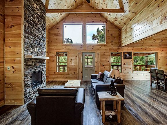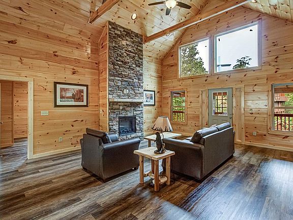 NEW IN 2022! Completely finished and ready to go! Immaculate 3BR 3BA two story cabin. 2288sq. ft. Plus two large, covered decks out back. Perfect location in the heart of Pigeon Forge. This cabin has a wonderful layout with an open concept design living area. A Wow factor when you walk in and see the beautiful, vaulted ceiling and impressive stone stacked fireplace. Lots of big windows, and unique features. Beautifully designed kitchen with nice stainless-steel appliances. 3 Large bedrooms, the bathrooms have walk-in showers with custom tilework. There is also an additional living space/game room downstairs already set up with a pool table. Ready for short-term rental or make it your vacation home. There is no HOA! You do get City services such as utility water, sewer. etc... Come see it today!