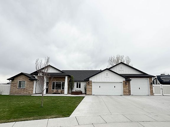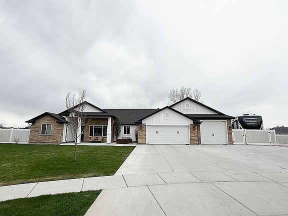 This stunning, custom built, single-level home is located in a wonderful neighborhood, tucked away in a cul-de-sac and just a short distance from Hill Air Force Base (HAFB). Built in 2018, this well-maintained property features three bedrooms and two bathrooms with so many upgrades. Inside, you'll find an exceptionally large pantry with ample cabinets and shelving for storage. Each room is equipped with ceiling fans, and the great room includes a fireplace with a blower for added warmth. The home is also fitted with a central vacuum system and soft water. The kitchen features a spacious island, plenty of cabinet space, a double gas oven, and a gas stove. Natural light streams in through large windows, many of which have automatic blinds. The master bedroom offers a generous bathroom, a walk-in closet, and a walk-in shower. The .36 acre property boasts a spacious, fenced-in backyard with gates on both sides of the house. It includes an automatic sprinkler system with a drip irrigation option, a 16' x 10' shed, and a large covered patio equipped with ceiling fans. Additionally, the backyard features a mature peach tree and a gas fire pit, as well as a generous concrete side pad for added storage. The garage accommodates three cars, with the third bay being extra deep. It features a workbench, an epoxy-coated floor, and a very large climate-controlled closet, which can be used for storage or as an exercise room. The garage also includes a sink and is stubbed for a natural gas heater.
