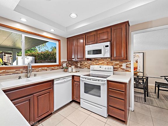 Located in a desirable Mission Viejo neighborhood with easy access to parks and schools, this home offers open spaces and new windows throughout. Enter through the double doors to the formal living room with wood burning fireplace, tiled floors, vaulted ceiling and large window providing lots of natural light. The living room opens to an intimate but spacious dining room with bay window showcasing backyard views. Kitchen features Corian countertops, recessed lighting, glass tile backsplash, ample cabinets and casual dining area with dual sliding doors that open to the large covered patio. Downstairs guest bath features glass vessel sink and granite countertops. Endless options with two family rooms, one with wood burning fireplace surrounded by built-in shelving and tile floors. The secondary family/bonus room with stained glass windows (a comeback in modern design) and laminate flooring is perfect for entertaining with sliding glass door access to separate, pergola shaded patio. Upstairs features primary bedroom with wood floors, sliding glass door with balcony, two mirrored wardrobe closets and bath with white cabinetry, granite countertops and shower. Three oversized secondary bedrooms and hall bath featuring tile flooring, granite countertops and tiled tub in shower. Backyard is one of kind balanced with two seating areas one with large vinyl covered patio and ceiling fan. Mature landscaping, rose garden and a tucked away large wooden playhouse. Conveniently located down the street from Linda Vista Park and less than half a mile from Linda Vista Elementary, La Paz Intermediate and blue-ribbon Mission Viejo high school. Minutes to freeway, Mission Viejo mall, restaurants, library, and medical facilities. Enjoy all the amenities that Lake Mission Viejo has to offer; 2 private beaches, swimming, boating, kayaking, paddle boarding and summer concerts.