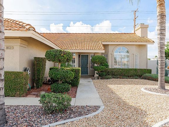 Welcome home to your beautiful residence with RV parking and no rear neighbors in a 55+ Community of Menifee/ Sun City. This turnkey home is in a great location and neighborhood, with low taxes and no HOA. Spanning 1,523 square feet, 3 bedrooms, and 2 full bathrooms this home has been very well taken care of and has various amenities that will not disappoint. With excellent curb appeal, you will notice a well landscaped low-maintenance front yard and paved walkway. As you enter the home, you will be greeted by the open and inviting family room with lots of natural light. Alongside the family room is a formal dining area, which is perpendicular to the kitchen. The kitchen features newer appliances, Corian countertops, ample cabinets for storage, and a small breakfast nook with a view of the yard. Aside from the kitchen is a pleasantly situated secondary living area that leads to the backyard. As you walk down the hall towards the bedrooms, you notice some additional storage areas, such as a small closet, and a linen area. The laundry room is conveniently located in the entry from the garage into the home. From there, you will head toward the remaining bedrooms and shared full bathroom with a tub/shower. The Master suite is nicely sized with a walk-in closet and its own bathroom that contains dual vanities, a standup shower, and a toilet room. The master bedroom also has access to the backyard. The interior of the home has been kept in great condition and maintains a combination of clean wood laminate and carpet flooring, neutral colors, and a new HVAC system. Entering the amazing backyard, you will be covered by the newer Alumawood patio with insulation and integrated lighting. The backyard is configured with concrete throughout, a small grassy area, and drought-tolerant landscape. There is just enough privacy in the back area while maintaining a nice view and access to the Salt Creek Walking Trail. There is also newer vinyl fencing running along both sides of the yard. Some final highlights of the spacious backyard are the Wood Shed and RV run. Situated in the heart of Menifee, this home offers proximity to local amenities, shopping, and dining. Don’t miss out on the opportunity to call this desirable 55+ Menifee home your own!