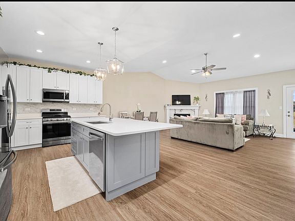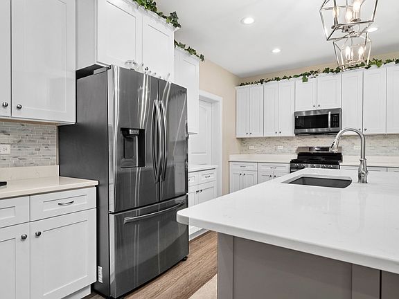 Experience pure luxury at Creekside Estates, Channahon! This stunning three bedroom, two bath, over 1800 square-foot ranch-style home boasts a beautiful brick exterior with maintenance-free siding. Inside you'll find elegant crown molding, wainscoting and chair rails throughout the home to give it that extra touch of luxury. The open kitchen features designer 42 inch custom cabinets, extended island with garbage pull and extra cabinet storage, quartz countertops throughout with stunning backsplash and a vaulted ceiling. The natural light illuminating it makes it even more stunning. Brand new carpet and whole house freshly painted means this home is move in ready! This home also offers a full basement with roughed-in plumbing for a full bath. Other outstanding features include six-panel doors, concrete driveway, 12x12 concrete patio, and a country porch to enjoy your days and evenings. It is also prepped for a generator! Don't miss out on this incredible opportunity to own your dream home in Creekside Estates, Channahon!