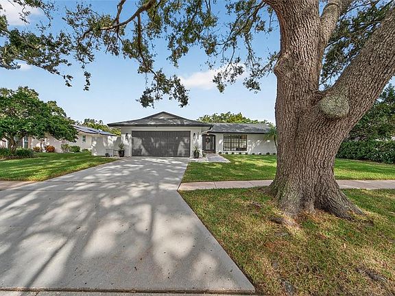 Impeccably renovated and truly turn-key, this 3-bedroom, 3-bath home with a dedicated office is ideally located in the prestigious Clubhouse Estates of Countryside. Offering 2,068 sq ft of refined living, every major system and surface has been thoughtfully updated, creating a rare “everything-done” opportunity in one of Clearwater’s most desirable communities. Recent 2025 upgrades include a complete whole-home replumb with all new piping in walls and ceilings, a new water service line to the garage with shutoff valve, fresh interior paint, full popcorn ceiling removal, new laminate flooring in the office and third bedroom, refreshed guest bath with new counters, fixtures, and toilets, plus a brand-new microwave and range. The garage has been finished with sleek epoxy-flake flooring. The exterior underwent a full transformation in 2023 with a new architectural roof, new seamless gutters with leaf protection, freshly painted exterior, a stunning 12x24 custom wood pergola with designer tile paver patio, new white vinyl fencing, professional landscaping, an enhanced front walkway, Rain Bird smart irrigation system, complete sprinkler overhaul, new well pump, and updated exterior lighting. A new HVAC system was installed in 2022. Originally renovated in 2020, the gourmet kitchen features white quartz countertops, custom shaker cabinetry, soft-close drawers, specialized pull-outs, lazy Susan, dual trash/recycle system, stainless double sink, stainless appliances, and a custom handmade backsplash. The primary suite offers a beautifully redesigned bath and custom walk-in closet system. Additional highlights include premium LVP flooring, recessed lighting, upgraded fixtures and fans, custom window treatments, and a fully outfitted laundry room with cabinetry, sink, folding station, and LG washer/dryer with pedestals. Hurricane protection panels and a front door cover provide peace of mind. Located within walking distance to Countryside Country Club and minutes to Countryside Mall, top dining, both Tampa International and St. Pete–Clearwater airports, and world-famous Clearwater Beach. Non-flood zone, non-evacuation area. A prime Clearwater lifestyle with every upgrade already completed.