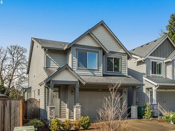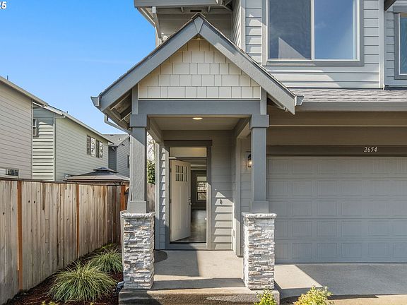 Better than new! This beautiful, 2021-built home blends modern finishes with a spacious backyard. The main level features laminate flooring, large kitchen island with quartz countertop, pantry, stainless steel appliances, and oversized great room with a gas fireplace. The primary suite boasts a vaulted ceiling, double vanity and generous walk-in closet.Big windows throughout bring in plenty of natural light. Tankless water heater. Appliances and window blinds stay. Two-car garage with driveway for additional parking. Low HOA. Conveniently located near downtown Forest Grove, Pacific University, community park, city aquatic center, and Hanson Stadium track.