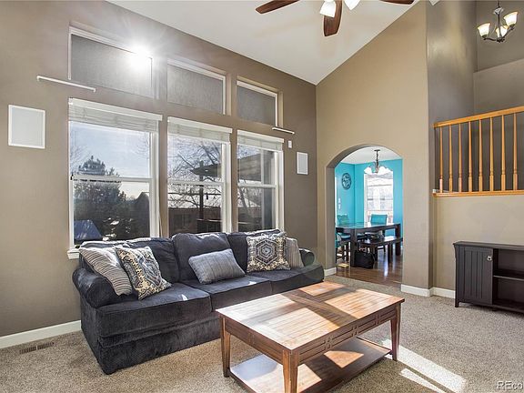 Fantastic light and bright 4 bedroom, 4 bathroom family home located on a quiet street in Thornton's Signal Creek neighborhood. A large primary suite ( enjoy mountain views ) with a large walk in closet ; 2 nice size bedrooms and an additional bathroom are all located upstairs. Natural light fills the family room with its near floor to ceiling windows. A convenient half bath is situated just off the living room–perfect for guests. The dining room accommodates a large table & more and it is right off the kitchen on the main floor which boasts newer appliances, a gas stove, granite counter tops and a pantry. Hard wood floors on the main and an office featuring French doors. There is a large recreation room, bonus room, bedroom with a walk in closet and bathroom in the finished walk out basement. Enjoy entertaining on your large trex deck or on your trex patio. Fully fenced back yard with mature trees and landscaping. New water heater and a new water filtration system. Leased solar panels which provide huge savings on your electric bill. Wonderful community trails, pool, playground & inviting HOA activities that make this neighborhood special. Oversized 2-car garage!