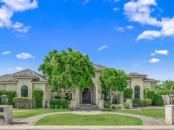 Welcome to the epitome of luxury living at Whitewing at Germann Estates in Gilbert, Arizona! Nestled on a half-acre lot within Gilbert's prestigious guard-gated community, this custom-built residence features 5 spacious bedrooms, 4 full baths, and a dedicated pool bath. One oversized bedroom offers versatile potential, perfect for a variety of alternative uses. The home also includes a separate private office, providing an ideal environment for working from home or using as an additional flex space. Ample parking is provided with a 3-car garage, plus a separate, oversized garage ideal for boat or RV storage, a car collection, or a home gym. Step inside and be greeted by soaring ceilings and an abundance of natural light, highlighting the stunning French Oak flooring... throughout the main living areas. The open-concept design seamlessly connects the gourmet kitchen, casual dining area, and expansive living room, perfect for both intimate family gatherings and grand-scale entertaining. The living room features a cozy fireplace, adding warmth and charm to any occasion.