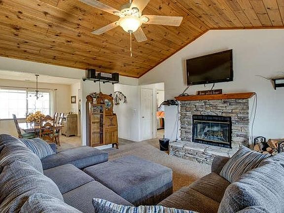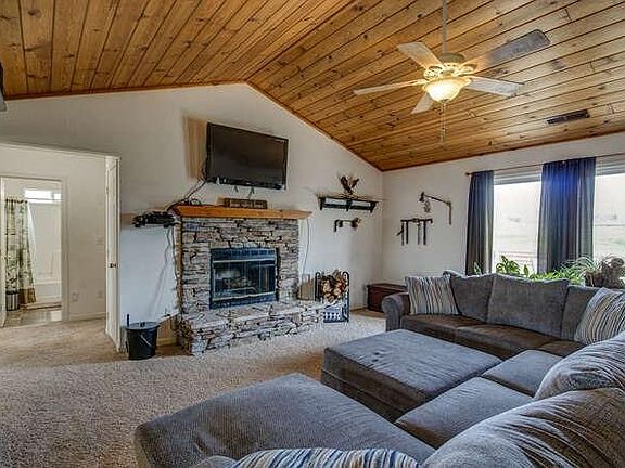 This cozy country ranchette has stunning views to the West! Watch the magnificent sunsets from your front porch or enjoy more privacy in the open courtyard out back complete with custom fire pit, hot tub, pre-wired exterior audio and low maintenance landscaping. Situated on 2.8 acres this home has an open concept layout with a large living room boasting a gorgeous stacked stone fireplace,raised hearth, vaulted oak ceilings and outdoor access. The spacious kitchen features partial open-faced cabinetry,abundant counter space, built in appliances, a pantry closet, open dining room and a breakfast bar. Master bedroom has a full size walk in closet, outdoor access and a private bath. Two additional bedrooms, second bath, indoor laundry, multiple closets and central vacuum system. Solar panels installed July 2021. Back-up generator set up with transfer switch and plumbed directly to propane tank. Finished oversized garage, two storage sheds,composting bin,fruit trees and circular drive. 2022-02-07