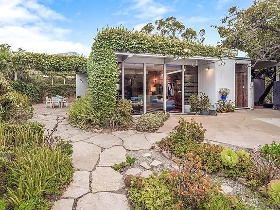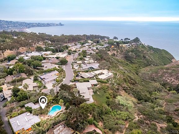 Designed by the famous Artist and Oceanographer Judith and Walter Munk, this coastal home embodies timeless charm and stunning ocean views. Munk's signature design reflects a deep understanding of coastal aesthetics and functionality. The property features a serene pool, private walking path through Sumner Canyon to the beach below, a covered driveway, and a versatile detached guest house with a full bathroom. The 19,400 square foot lot and private drive on the back and side of the property create exclusive use and privacy. Situated in the Scripps Estates Association, this exclusive community offers access to UCSD, La Jolla Shores and UTC amenities. Experience coastal living at its finest with endless potential to enhance your dream home.