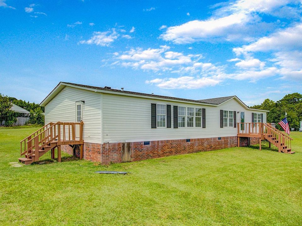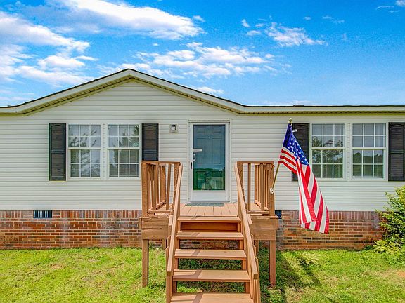 Country Acres - 1,600 Sqft Manufactured home on over Half an Acre with no HOA! Recently updated, 3 BR/2BA split floor plan home is ready and waiting for you! Inside you'll find newer flooring and fresh paint to name a few updates! The kitchen offers an island with space for pull up bar seating, a breakfast nook, and a pantry! The Owner's suite features a vaulted ceiling, his and her walk-in closets, and a massive ensuite bathroom with Garden tub, double sinks and separate shower. A Walk-in laundry/mudroom is convenient for loading in groceries and a shoe and book bag drop zone. Enjoy a spacious back deck where you'll enjoy an evening beverage of choice while admiring your peaceful backyard! Outbuilding remains as-is. This home is FHA eligible with brick underpinning but not de-titled at this time. If required by lender, and acceptable offer is received, seller will make foundation FHA compliant.