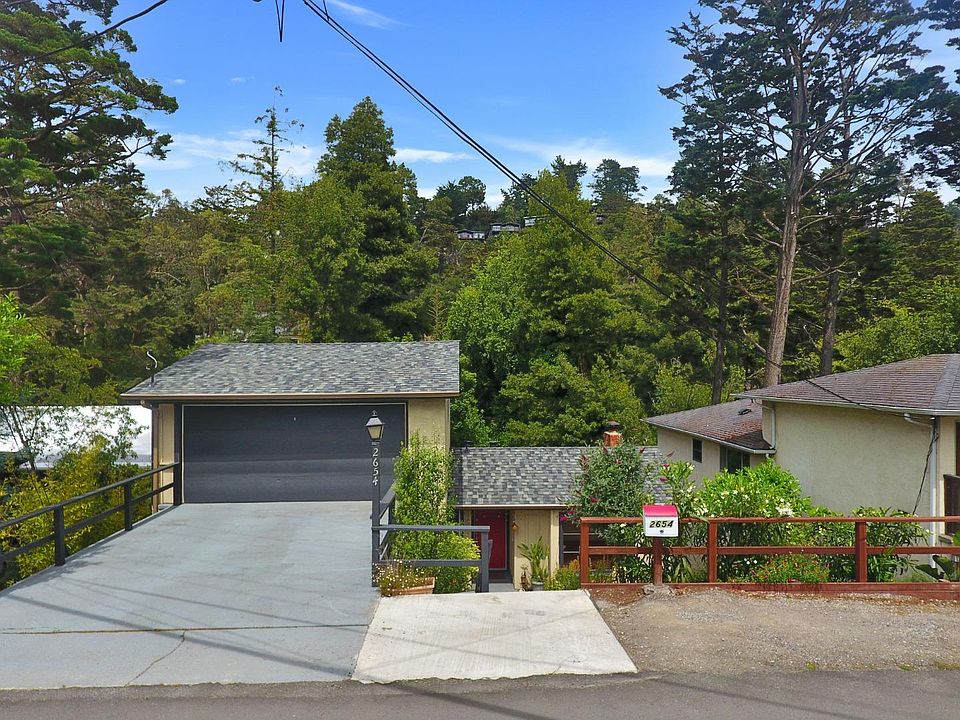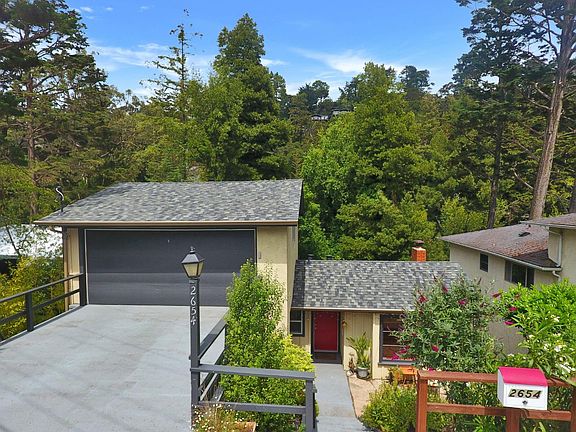 This enchanting home nestled in a wonderful park-like setting in Montclair is a nature lover's dream! A large flatstone patio in the front garden; Enclosed backyard overlooking a secluded hill and natural surroundings with a slow running creek; Large open living room with closet overlooking a beautiful front garden, which could be converted for 3rd bedroom; Beautiful remodeled bathroom, hardwood floor, tile floor in dining & kitchen. Vaulted ceiling & fireplace in family room; 1 year old water heater; Upgrades including: skylight, front door, light in kitchen & Chandelier in dining, tile on back deck and enclosed the space under the deck for more storage; retaining wall in front yard; New motor for garage door; Newer roof w/ gutter screen; New faucet for kitchen sink. Spacious storage room could be a walk-in closet or another bathroom; Large detached 2 car garage w/ 200 AMP; Minutes to Montclair Village, Sunday Farmers market & schools. Easy access to highway 13 & highway 24.