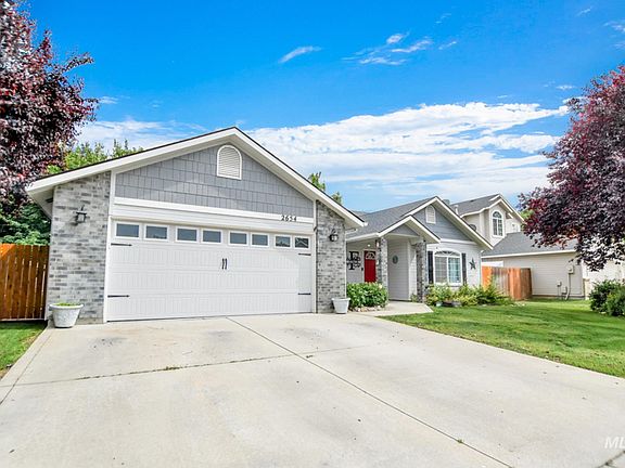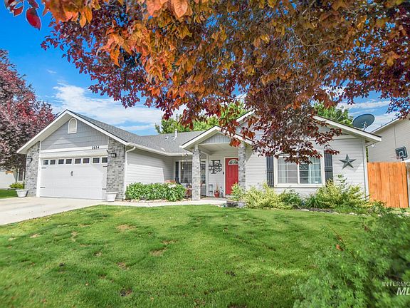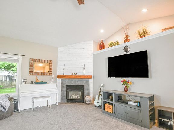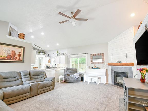 Single level 3 bed/2 bath home centrally located in Meridian, close to shopping, restaurants, the Village and the freeway. Large living room has vaulted ceilings, a gas fireplace with a shiplap wall, and lots of natural light. The updated kitchen has LVP floors, quartz countertops, tile backsplash with a farm sink, along with stainless steel appliances, including a new dishwasher. The refrigerator stays! Lots of cabinet space including a breakfast bar with storage, and a separate pantry. Dining room/eating space is big enough for a large table and an area for a home office, with a storage bench under the window next to the sliding glass door that leads to the covered patio. The laundry room, with the washer and dryer that both stay, is off the dining room leading into the garage. On the other side of the house are 2 bedrooms and the master bedroom with a tiled shower, dual vanities and a walk-in closet. There is also a sliding door that leads out to the covered patio. Mature landscaping and great curb appeal!