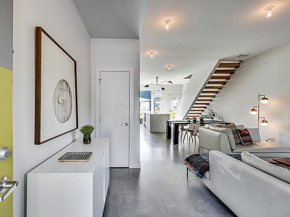 Modern luxury and clean lines exemplify this spectacular FlexHouse2 row home designed by IS-Architects and Osterhaus McCarthy. Original buyer in owner- occupied Ridgeway stretch of the 31-unit Ranquist development, has meticulously maintained this property. Expansive first floor boasts an additional half bathroom & storage closet, significant upgrades that most Flexhouses do not have. 10'+ ceilings and radiant heat polished concrete floors with large windows create a spacious, light-filled open floor plan for generous living and dining, with an Italian Archiesto kitchen. Brand new 2 sided 8' long island with durable waterfall top provides an abundance of storage with built-in microwave. The second floor has upgraded solid white oak floors, offering 2 large bedrooms with extra-depth closets and large picture windows overlooking the tree-lined street and lush backyard. These bedrooms share a full bath with porcelain tile floor and shower walls. Also on this floor is a large utility room with front-load HE W/D with extra storage. The third level is a magnificent full-floor primary suite with upgraded solid white oak floors throughout. Grand primary bathroom with skyline views has separate sinks, over sized soaking tub, porcelain-tiled shower and private toilet. Giant walk-in closet with Elfa system and additional extra-depth closet. Huge primary bedroom with ample space for home office area boasts treetop views, custom roller shades throughout. The 49' backyard oasis begins with a custom sustainably-forested Brazilian hardwood ipe deck with bench seating and custom AC enclosure. Native prairie grasses and custom commercial-grade Uni-lock walkway frame a generous lawn with plenty of space to run around. Private over sized 2-car garage with vaulted roof and huge attic for additional storage flank the property. Ideally Logan Square location a 10-minute walk to Blue Line train and Metra Healy station, 2 blocks from Koz park, which is preparing for a major renovation and everything else Logan Square has to offer.