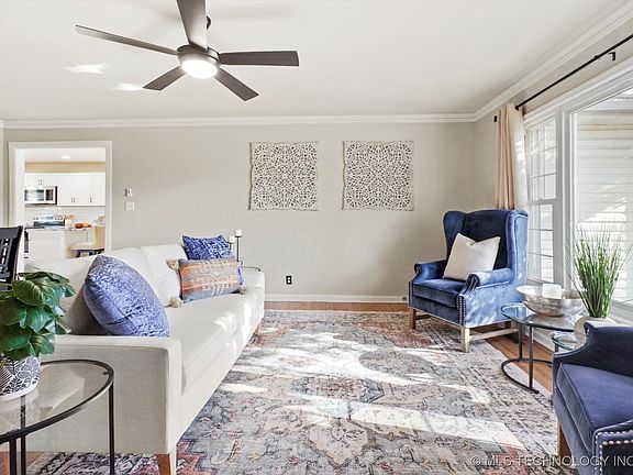 Back and better than ever, with a price adjustment. This is a fantastic opportunity to own a great home in the lovely Wistful View neighborhood in a prime midtown location in Edison schools near the fairgrounds. Minutes from Cherry Street, Route 66, BA Expressway and I-244 to downtown. 2023 new roof and completely renovated kitchen, which was reconfigured to add storage and a peninsula, granite counters, new stainless appliances. Details include all new cabinetry with pull-out drawers, trash drawer, corner shelving and additional cabinets. New backsplash, convection range with air fryer and steam clean function. Undermount sink and can lights. Major renovations include beautifully refinished original hardwood floors, some vinyl windows, and a freshly painted interior, and re-glazed tub. Updated electric panel. Re-grouted tile floors in kitchen, laundry and bathroom.