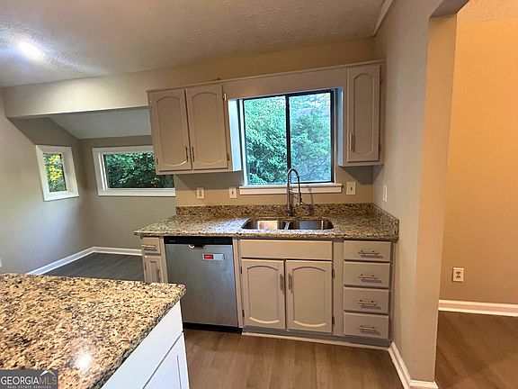 Available 9/4/25. Nearly 3000 sq. ft. Spacious 5 bed, 3 full bath home in the Pope High School district. Newly remodeled contemporary home. New siding, new lvp flooring and fresh paint throughout. Main level features open floor plan with exposed beams, solid surface kitchen countertops, eat-in kitchen with island, separate dining room and family room with fireplace. Upper level has spacious master suite with balcony, two nice sized secondary bedrooms and a shared bath. There are two additional daylight bedrooms, full bath and exterior entrance in lower level. Large fenced back yard. Pets welcome with additional pet fees. Hurry, won't last long. Call agent for easy showing. Copyright Georgia MLS. All rights reserved. Information is deemed reliable but not guaranteed.
