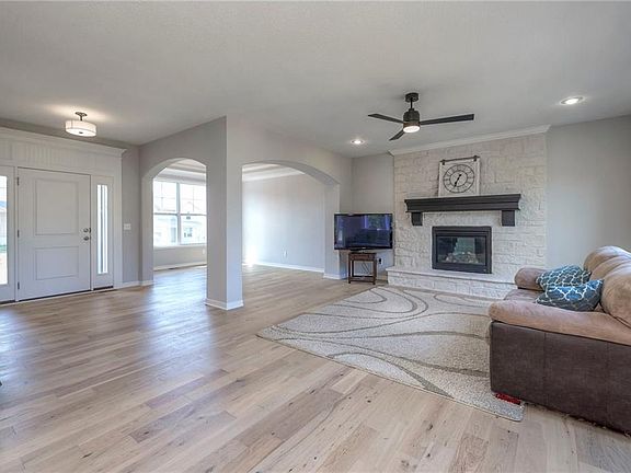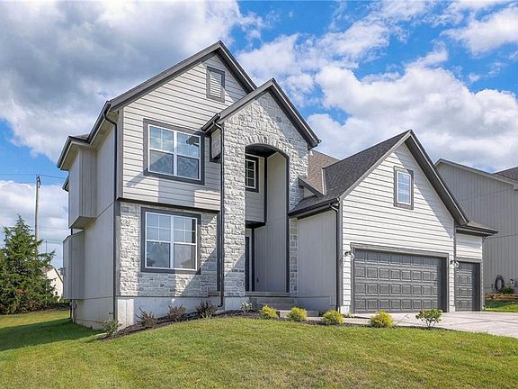 Welcome to this beautifully designed 2024 Prieb Homes Levi I model, offering 5 bedrooms, 4 bathrooms, and upscale finishes throughout. This thoughtfully crafted home features light hardwood floors in the dining and great room, upgraded quartz countertops and quartz backsplash, and designer lighting and bathroom selections that elevate the entire space. The kitchen is a standout with white cabinetry, a spacious island, and a walk-in pantry, perfect for both cooking and entertaining. The main level offers a convenient bedroom and full bathroom, ideal for guests or a home office. Upstairs, you’ll find 4 additional bedrooms and 3 full bathrooms, including a luxurious primary suite with a spa-like bath featuring dual vanities, a separate tub and shower, and a massive walk-in closet. Additional highlights include a drop zone at the garage entry for ultimate organization. A covered patio for outdoor entertaining. Located in the sought-after Prairie Farms community, this home is just minutes from Olathe Lake and Olathe West High School. Don’t miss your chance to own this incredible new build—schedule your tour today!