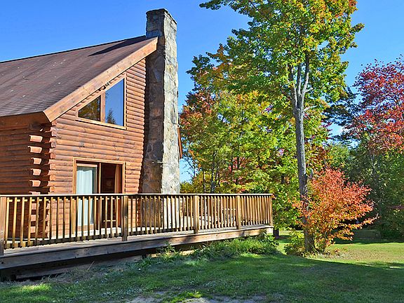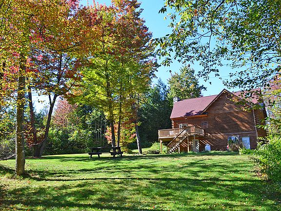 Traditional 3 Bedroom + loft/2 bath log home privately situated but within close proximity to the Okemo, Bromley and Magic ski resorts as well as the historic villages of Ludlow, Chester and Weston. This inviting home boasts an easy to care for large level lawn for summer fun. Sit on the wrap around deck and listen to the sounds of Vermont as the sun rises over the freshwater swimming pond. A cozy loft and master bedroom with bath takes up the entire second floor. Open living/dining room with cathedral ceilings and 3 sets of French doors let in tons of natural light. Floor to ceiling field stone fireplace is a focal point and will warm you up on cold Vermont nights. Beautiful hickory wood flooring throughout most of the house. Walk out basement is waiting to be finished for added space. This property is the perfect year round location.