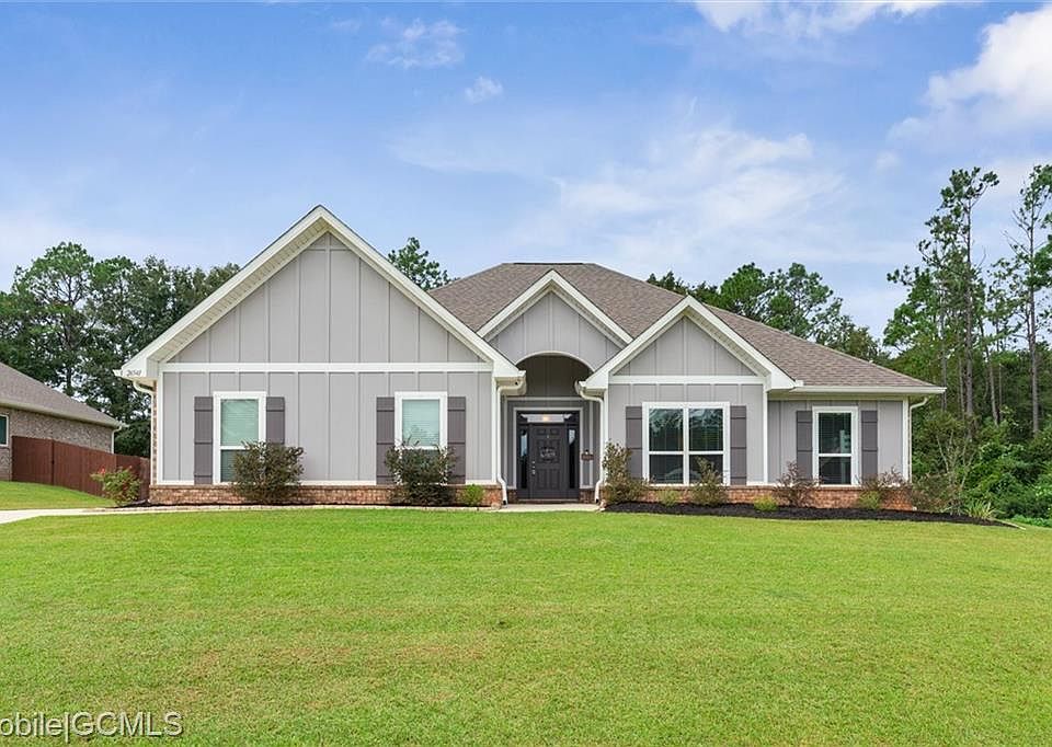Welcome to The Reserve at Daphne! Experience gracious living in this beautiful resort-style community. Amenities like a Zero Entry Lazy River Pool & Covered Outdoor Kitchen are normally only found in much larger neighborhoods. Zoned for Daphne Schools including the new Belforest Elementary! One of just a few Kaden plans in the neighborhood, this gorgeous Gold Fortified 5-Bedroom home has spacious open concept and luxury details. The Chef's Kitchen features Stained Cabinets, Granite Countertops, Stainless Steel Appliances, and a Huge Island overlooking the Dining Area & Family Room with Gas Fireplace. Custom Laundry Room with Shiplap and so much more! It sits on a large ½ acre lot across from common area with wooded views all around. Storage Building, Private Covered Back Porch, Gutters, and Side Entry 2-Car Garage. Balance of Builder's 10-year structural warranty transfers to new owner!