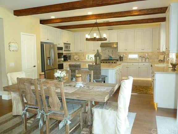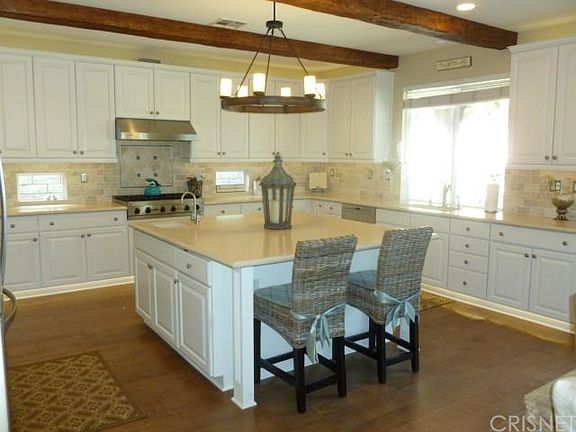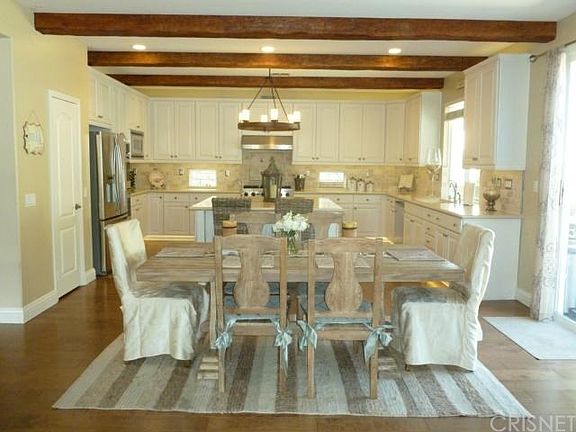Call Alexx today for a private showing at 661-444-1817 Exquisite Pool Home in desired Stevenson Ranch. This stunning executive 4 bedroom (possible 5th bedroom) home offers upgrades galore! Gorgeous hardwood floors flow throughout, Kitchen boasts ceasar stone counters, travertine back splash, beamed ceiling, Viking cook top and hood, SS double oven, microwave and dishwasher, lighted baseboards, recessed lighting to base board, under counter and atop cabinet lighting, decorative windows, pull out drawers and large pantry. The Super Family Room has surround sound, built ins, nice fireplace, ceiling fan, new double door sliders that exit to the private drought friendly backyard that features pool, spa, built in BBQ area, fire pit, covered patio with ceiling fan and lush gardens. The master features newer carpet, ceiling fan and the master bath is right out of a magazine! It is a MUST see! Every bathroom is remodeled with newer counter tops and decorative tiles in the showers. This home shows light and bright and offers a formal living area, formal dining area, downstairs den/playroom or poss 5th bedroom, office nook and so much more.