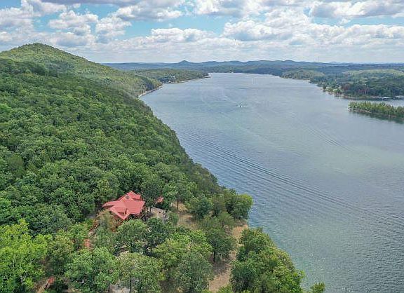 There is only one- on Table Rock Lake-magnificent craftsmanship-solid log home. Incredible decking on two levels only elevates the grandeur of the Ozark Mountains and Table Rock Lake. Impressive on all levels, from the main channel, the bridge views, sinking sunsets and glowing sunrises, there is only one. And it adjoins the National Forest on the back side. You are completely surrounded by Table Rock Lake mystic presence. Expect the exceptional, the extreme, starting with the landscaping and live water feature to the lush foliage. Upon entering the home one can't help but notice the live edge support huge beams, stunning granite and a quilt pattern on the solid oak floor -endless surprises. Floor to ceiling natural stone fireplace. Ooo and aaahhh around every corner, a true masterpiece of timeless beauty and expert craftsmanship. Custom built wagon wheel hangs as dinning light and TV stand plus the adornment on the fireplace, all convey with the property. Above the detached garage is the VRBO and or separate mother in law quarters. Pristine turn-key at every level. Incredible and massive will mesmerize you. Very private and tucked away on the edge of the forest, lakefront with soaring views in every directions. VRBO the apartment over the detached garage and you will still have plenty of room for all your family and friends. Three separate living areas. Completely furnished with local talents and custom woodworking... THERE is not a better view, make it yours today! Slip available for additional $$$ in the subdivision!