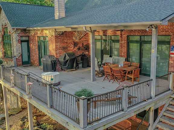 This luxurious lakefront home offers panoramic lake views throughout. Fully furnished, turn key lake home. This beautiful was once featured as 417 Magazines 'Home of the Year'. The open living, kitchen and dining area make a warm and inviting space with plenty of special touches from the professional stainless steel appliances to the vaulted wood ceilings. It offers plenty of light from the wall of windows overlooking the sparkling waters of Table Rock Lake. The master bedroom is truly an oasis situated away from the other bedrooms and complete with its own his and her walk in closets, walk in shower, soaker tub and even a private entry to the back deck. Downstairs also features what could be considered a master bedroom with an oversized closet and entry to an attached bathroom. Huge separate living areas up stairs and down, 5 total bedrooms and flowing upper and lower decks provide ample space to entertain family and friends. The hot tub looking out to the lake is a perfect spot to relax the day away. Just below the home is the 10x28 boat slip available for additional $. All of this and access to the private community inground pool and tennis courts. Don't miss out on this gem!