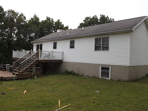 Large Primary home in Pleasant Valley School District. Bi-level home on just over 1 acre offers fully finished lower level. We have many upgrades such as Oak hardwood flooring in dining room, living room and hallway, Ceramic tile in the kitchen and all 3 baths. Living room with brick wood burning fireplace, picture window and cathedral ceiling, Kitchen with custom cabinets, granite counters, dining room with sliders to rear deck. Master bedroom w/oak hardwood floors and full size master bath. Lower level has large family room w/propane gas heater, 3 guest rooms, a laundry rm and bathroom. Additional features are 2 tiered rear deck, 1 car Garage, shed and much more. Home in low dues community with heated swimming pool, club house and awesome views!