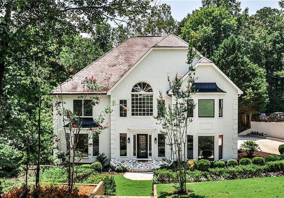 NEW ROOF!! This stucco Georgian is set in a quiet cul-de-sac within the sought-after East Cobb School District. A two-story foyer with hardwood floors and a chandelier welcomes you inside. The updated kitchen includes quartz countertops, stainless steel appliances, white cabinetry, a walk-in pantry, and a breakfast nook. It opens to the living room with a stone fireplace and access to the newly re-planked deck overlooking the backyard—an ideal space for entertaining. Recent updates include refinished and new hardwood floors, new carpet, fresh interior paint, a renovated kitchen and laundry, and the re-planked deck. The large primary suite offers a bay window, tray ceiling, walk-in closet, and a spacious bath with wooded views. Three additional bedrooms provide plenty of room for family or guests. The daylight basement offers options for an in-law suite, game room, home theater, or other uses. Outdoor features include multiple decks, new sod, a sprinkler system, landscaped yard, and a front lawn fountain. Community amenities include a pool and tennis courts. Just minutes from The Avenue, downtown Roswell, and the Chattahoochee River, this home offers both comfort and convenience