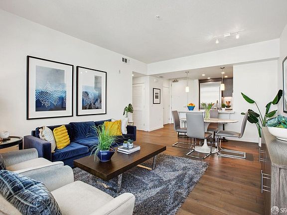 Fabulous opportunity to own a VIEW PENTHOUSE with private deck at The District! This luxe 2-bedroom, 2-bath condo was designed with comfort and convenience in mind and served as a model unit showcasing high-end upgrades. The home features an open concept floor plan with direct access from the living area to a private deck spanning the entire length of the unit and offering expansive northerly City views, and a gorgeous European style kitchen with breakfast bar, custom StudioBecker cabinets, sleek Caesarstone countertops and full backsplash, and Thermador and Bosch appliances. The two gracious bedrooms include a primary suite with walk-in closet and a spacious bath with floating dual vanity, lovely marble floors and surround, and soaking tub. Wide plank wood floors, central heat and air conditioning, in-unit laundry with Bosch washer & dryer, and 1-car secure parking add to the home's appeal. Building amenities include high-speed elevators, on-site manager, sky terrace with BBQ and fire pit, owner's lounge, and fitness center. Super convenient location close to Alta Plaza Park and to a wonderful array of shopping and dining options along the Divisadero and Fillmore retail corridors. Walk Score 98 = Walker's Paradise.