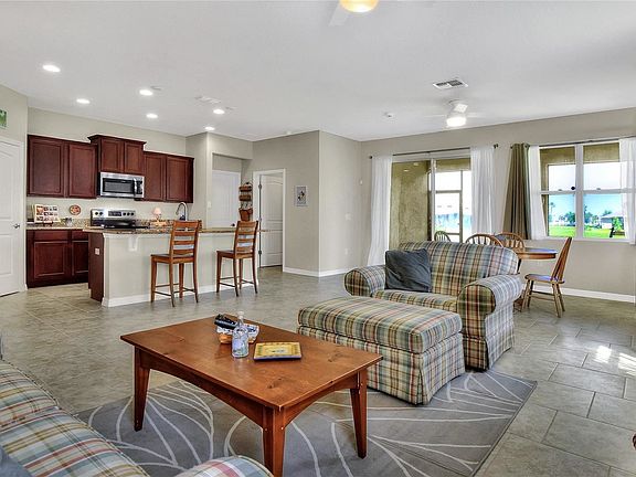 LIVE THE DREAM in this 2/2 with BONUS ROOM in 1,800+ SQ FT!! Enjoy the coveted Florida lifestyle with a WATER VIEW, wonderful COMMUNITY AMENITIES, and LOW MAINTENANCE inside and out. Whether you're down-sizing, up-sizing, seeking a 2nd home, or just ready to spend less time on upkeep and have more time for fun, check out this OPEN FLOOR PLAN beauty full of ABUNDANT NATURAL LIGHT. Located in the 55+ GATED SUBDIVISION of Heritage Landings in the Lakes at Laurel Highlands, enjoy CONVENIENT ACCESS to local shopping, dining, professional services, and entertainment, both nearby and in TAMPA & ORLANDO too! When you are home, lounge on your SCREENED LANAI and relax with your WATERFRONT view and soothing sound of the WATER FOUNTAIN. Or head over to the community center to sun and swim in the RESORT SIZE POOL, workout in the WELL-APPOINTED FITNESS CENTER, entertain in the ELEGANT CLUBHOUSE, or use the PRIVATE MEETING ROOM. There's even a KID ZONE in the pool and a PLAYGROUND for your younger guests. Don't worry about mowing since LAWN CARE IS PROVIDED, but feel free to garden as you choose. Inside care is easy too with TILE EVERYWHERE except in two bedrooms with cozy carpeting. The GREATROOM configuration keeps the group together around the LARGE KITCHEN ISLAND and hanging out in the SPACIOUS LIVING & DINING AEAS. The kitchen also has GRANITE counters and a WALK-IN PANTRY. HUGE MAIN SUITE includes TWO-WALK-IN CLOSETS and bath with STEP-IN SHOWER, DUAL SINKS, linen closet and SEPARATE WATER CLOSET. In this SPLIT BEDROOM PLAN, a comfortably sized GUEST ROOM at the other end of the house has an ADJACENT BATH. The BONUS or FLEX ROOM is currently configured as an OFFICE. INSIDE LAUNDRY plus NUMEROUS CLOSETS and BUILT-IN CABINETRY give you PLENTY OF STORAGE to organize and keep your favorite things. Built in 2019 so don't worry about the NEARLY NEW ROOF, 15-SSER HVAC, WATER HEATER AND APPLIANCES. Lot's of ENERGY-SAVING FEATURES polish off this beauty. Come see for yourself!