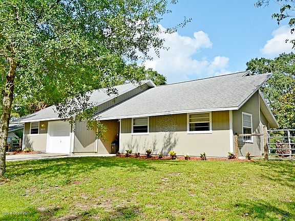Unique find in desirable West Melbourne. If you want privacy and country living in the heart of West Melbourne, this home is for you! 3 Bed 2 bath has a large eat-in kitchen w/ stainless steel appliances and tile flooring. Don't let the single garage door fool you! Designed for 2 cars but used as 1 car w/ large workshop. Access the deck through both kitchen and Master Bedroom. If you have a boat, camper or RV you will have a place to put them all! The rear of this large .5 acre lot also has access from Church St. where it has a 12x20 RV pad, 10x20 Garage or workshop, and a car port. Entertain on your large 24x24 covered deck or build a fire in the pit! Water is supplied from artesian well with no staining, no smell and no monthly cost! Close to shopping, schools & easy access to I-95