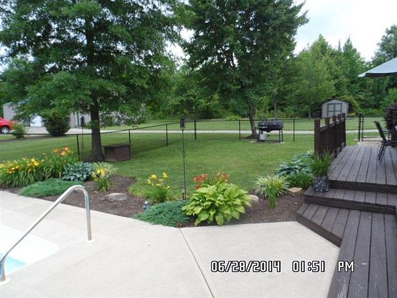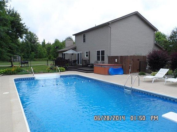Ready for you.All new Kit.& Appls,Partially Fin. Bsmt,18x36 InG pool 2009,4BR, 2.5 Baths,nice front porch,40x60x10 Pole Barn-Workshop.Surrounded by nature & nice homes.1 year HOW.LL Rec Room w/additional room used as bed #5, Stone Hearth F.P.