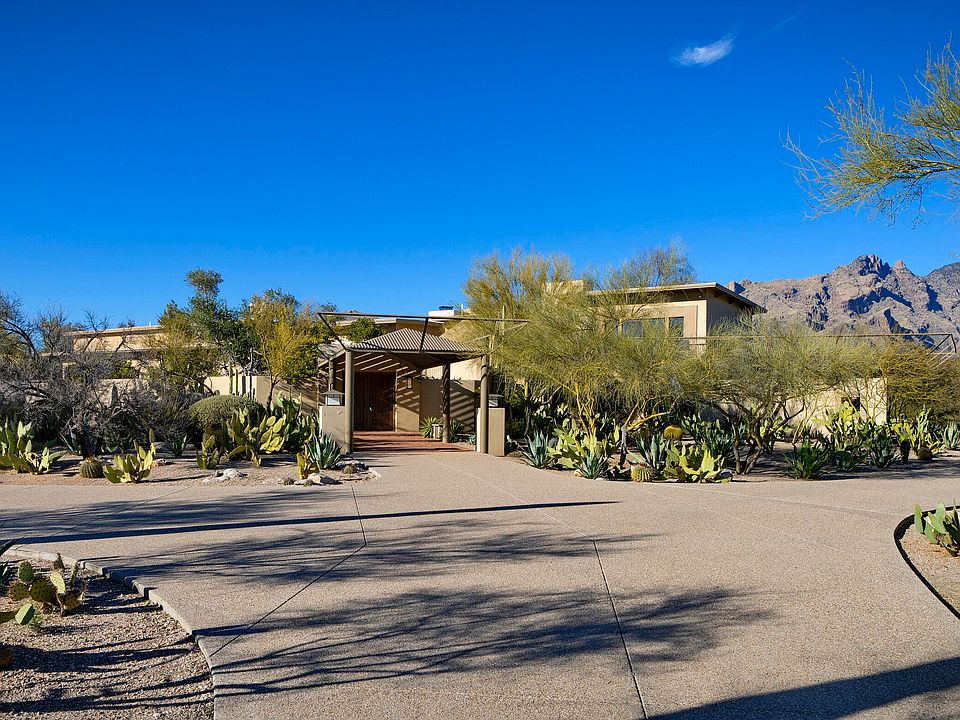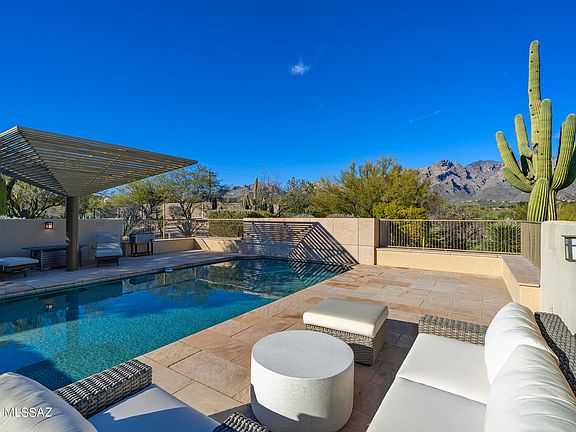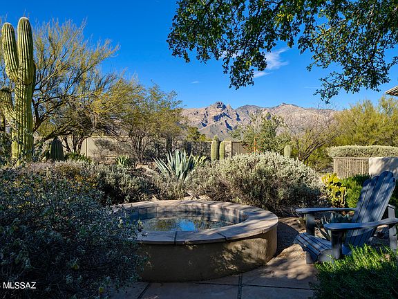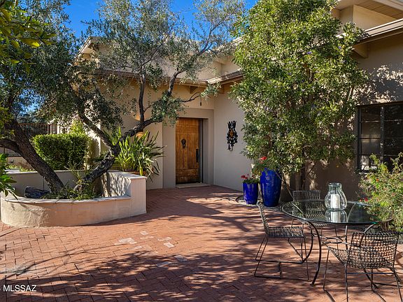 Situated on a private 3.5 acre lot in the heart of the Foothills, this impeccably maintained 4 bed/4 bath ''Joesler'' is the perfect combination of historic charm with modern updates. Completely updated with a classic and timeless design throughout. Enter through a stunning steel ramada into a front wraparound gated brick courtyard complete with citrus trees and 2 fountains. As you enter the front door into the great room you are immediately encapsulated by soaring 14 ft. ceilings, 4-inch-thick gorgeous wood floors (repurposed from an old airplane hangar truss), an impressive wood burning fireplace, and a huge, picturesque window that perfectly frames Santa Catalina's Finger Rock. The east wing of the home features a custom chef's kitchen with stainless steel counters, appliances, large island with gas stovetop, and a 2nd fireplace. 8X6 picture perfect window captures the majestic saguaros and native Tucson plants surrounding the property. Guest bedroom with ensuite off the kitchen also could be used as an office space. 2nd floor generous sized guest suite with ensuite and large wrap around balcony overlooks the city and mountains. The west wing features another generous sized guest bedroom with bathroom and the primary suite. The exquisite primary suite has exposed beams and is lined with windows overlooking the lush courtyard and fountain. Primary bathroom with double vanities, soaking tub, walk-in shower, and walk in closet. Resort like backyard with 4 fountains, courtyards, dog run, sparkling pool/spa, and steel ramada to provide shade during the hot summer months. Extra storage space in garage and basement (which houses the utilities). Spectacular desert landscaping throughout with endless cactus, fruit and mature shade trees. The perfect desert sanctuary to take in the incredible sunrises and sunsets. Enjoy minimal utilities thanks to the owned solar system, tankless water heaters, and water reclamation tanks. Prime Foothills location just minutes away from La Encantada shopping center, fine dining, and Tuscon's best country clubs.