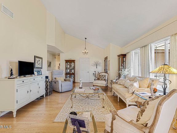 Welcome to 2655 Georgette Place. This beautifully maintained 3 bedroom, 2 bath single-story home is nestled in the coveted Summerfield neighborhood of Simi Valley. Boasting 1,759 sq ft of living space on a spacious 9,147 sq ft lot, this residence combines comfort, style, and functionality, offering an ideal layout for family living and entertaining. As you enter, you're immediately greeted by the warmth and elegance of real wood floors that flow seamlessly throughout the entire home. The open, light, and airy floor plan is complemented by neutral tones that create a welcoming atmosphere in every room. The spacious, yet cozy living room is perfect for relaxing and unwinding and delivers direct access to the dining area, which provides the perfect place to host gatherings. The heart of the home is the gourmet kitchen, featuring rich oak cabinetry, luxurious granite countertops, and high-end Bosch stainless steel appliances, perfect for both everyday cooking and hosting family gatherings. Adjacent to the kitchen is the inviting family room, where you'll find an upgraded gas fireplace adorned with a stunning stacked stone facade and ceramic logs, creating a cozy and stylish focal point. The spacious primary bedroom suite is a true retreat, offering a large custom walk-in closet, providing ample storage space and organization. The attached primary bathroom is a spa-like oasis, showcasing dual sinks with granite countertops, and a custom-tiled walk-in shower with a sleek glass door enclosure, making it the perfect spot to unwind after a long day. Two additional bedrooms are generously sized and utilize a well-appointed full bathroom, providing plenty of room for family, guests, or a home office. Outside, the backyard is a serene retreat with lush landscaping, a covered patio, and a large grassy area perfect for outdoor gatherings, play, or relaxation. The expansive lot offers plenty of potential for a future pool or garden. Additional features of this home include dual-pane windows for energy efficiency, scraped ceilings for a modern look, ceiling fans in key rooms, and motorized blinds in the living room, primary bedroom and over the kitchen sink for added convenience and privacy. A separate laundry room adds to the functionality of the home. This home is ideally located near top-rated schools, parks, and retail centers, offering easy access to everything Simi Valley has to offer. Don't miss the opportunity to make this beautiful property your new home!