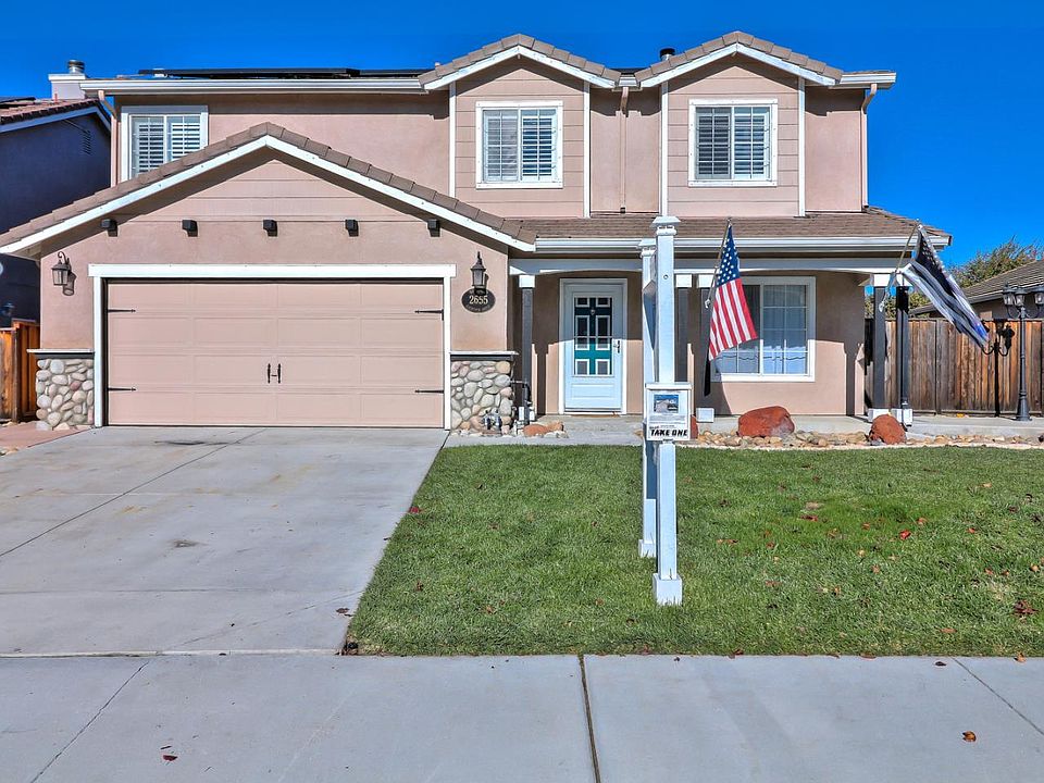 Move-in ready, family home in Hollister! Great space with over 2700 sf of living space, 4 bedrooms plus a huge bonus area upstairs that could be converted to another bedroom, media room or game room for the kids! There are 2.5 bathrooms, both full baths featuring dual sinks. The master bathroom features a stand up shower and tub as well as a large walk in closet. The light, bright kitchen features a large island with room for your everyday dining set. There is a separate family room and living room as well as formal dining. The two-way fireplace spreads warmth in both the family room and formal rooms. The backyard is spacious with a large side yard. Buyers will love the solar; huge $ saver keeping your home cool in the summer and warm in the winter without the the worry of high cost electric bills! Near Whale Park and walking distance to shopping - great proximity to commuter routes too! This home is priced to sell!