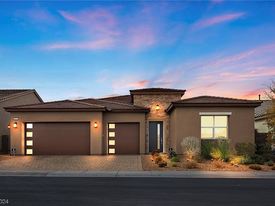Stunning Ranch Style Home Sold Completely Furnished and Move In READY in the booming Inspirada Community of Henderson. This former Toll Brothers Model boasts intricate tilework and woodwork throughout. Each of the three bedrooms comes with its own ensuite bath. The greatroom is equipt with a huge corner slider that opens both the kitchen and the greatroom to the meticulously designed backyard paradise. The backyard has a covered patio with dropshade for both shade and privacy, built in BBQ area and a separate lounge area with access to the primary suite. The Chef's Kitchen offers top of the line appliances, bar area,breakfast nook , large island with porcelain counters and custom pantry. The Den is a fabulous custom flex space that can serve as an office or media room. The Primary Suite is enhanced with a expansive custom California Closet system, a luxurious spa-like bathroom with floor to ceiling glass shower with his and her vanities. This home is truly second to none.