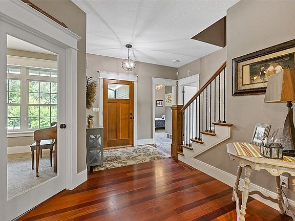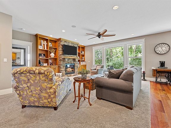 One-of-a-kind acreage nestled between the Cedar River and the City of Cedar Rapids Reserve. This one-owner custom built home sits at the top of the on 6-plus acres overlooking the city skyline and river with a spectacular view of the Ellis fireworks, doubling as a sledding hill, soccer field and park. The established neighborhood is close to schools, downtown and convenient access to I-380 and HWY 100. The main level has plush carpet, hardwood, luxury vinyl plank and tile floors, an office/study, and features a fireplace, central vac, and a security system. Also on the main level are 3 bedrooms, 2 full baths, and a half bath. The kitchen features hardwood floors, granite counters, tiled backsplash, stainless steel appliances, pantry and breakfast bar. The primary bedroom is on the main level and features carpet floors, and a walk-in closet. The primary bedroom's ensuite includes tile floors, granite counters, and tiled shower. The upper level includes a bedroom and a full bath. The newly finished walkout lower-level features a full bath, storage area and laundry room. Outside you'll find a screened porch and patio overlooking the yard with mature trees. Exterior features include a great view, waterfront access, and detached building. Enjoy the mature trees and wildlife! Property Improvements: (2021) Finished Basement, Refrigerator, Dishwasher, Tankless Water Heater, Covered Patio Pergulo, & Central Vac System; (2022) - Microwave & Garage Heater.